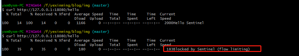 然后我们重启服务,重启服务时候,之前的监控信息会丢失,重新设置流控为0,然后请求,返回如下结果: